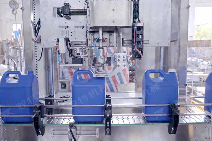 雙特機(jī)械稱重式灌裝生產(chǎn)線適用于5-200L的稱重計(jì)量灌裝,自動(dòng)完成計(jì)數(shù)進(jìn)桶、稱重計(jì)量灌裝、自動(dòng)理蓋、跟蹤式旋蓋機(jī)、自動(dòng)貼標(biāo)機(jī)、噴碼機(jī)、自動(dòng)供棧機(jī)、碼垛機(jī)、自動(dòng)纏膜 等全流程生產(chǎn)。