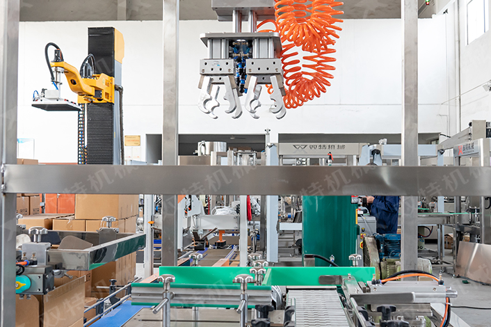 機(jī)器人碼垛系統(tǒng)主要針對(duì)包裝線的后道碼垛而設(shè)計(jì),機(jī)器本身占地小,重量輕,功能全面,可以再不同的環(huán)境下使用。