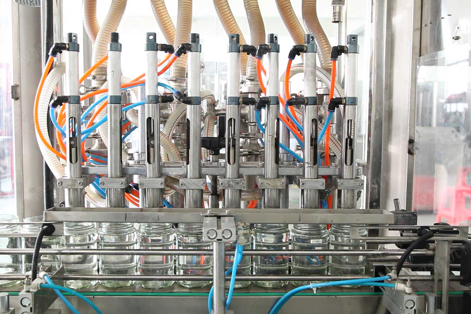濃醬灌裝機(jī)主要是針對(duì)食品行業(yè)的醬類分裝,適用于調(diào)味品中帶顆粒并且濃度較大的辣椒醬、豆瓣醬、番茄醬、沙拉醬、花生醬、芝麻醬、果醬、牛油火鍋底料、紅油火鍋底料等物質(zhì)的粘稠醬類的灌裝。濃醬灌裝設(shè)備配帶攪拌功能,并且使灌裝更加精確。